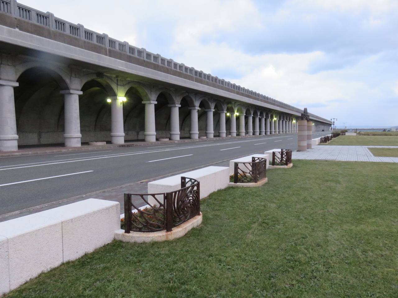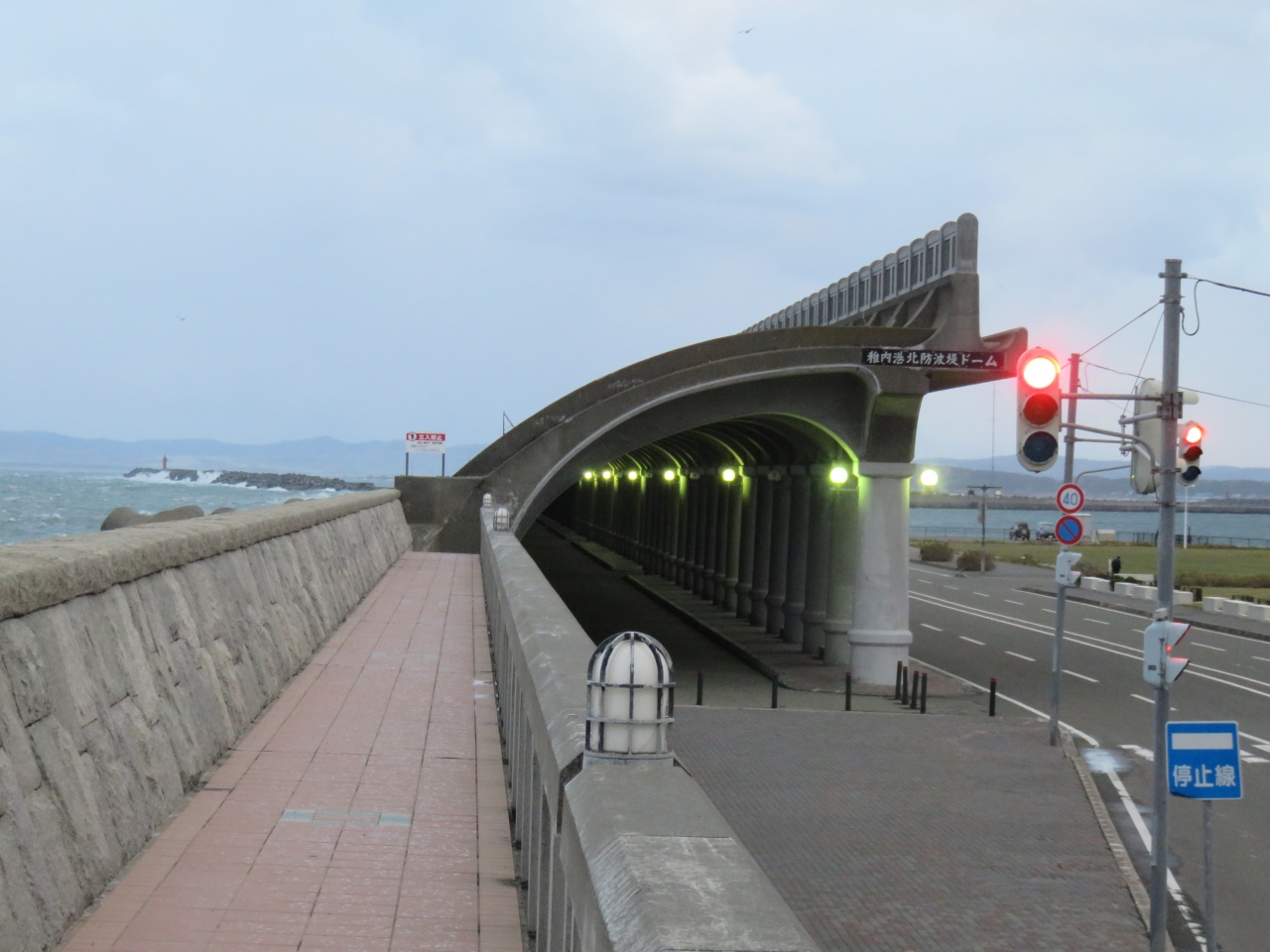 ユニークなデザインと規模の防波堤だ。かつての鉄道駅と船の乗り場の間を濡れずに歩けるように有用な設備だったようだが、今は鉄道駅も離れてしまったとのこと。ノシャップ岬を見物したあとで、このあたりを散歩した。樺太が領土だったころは、当然、フェリー等の基地としても、賑ったことであろう。下関も同様の理由がある。ただ、プサンと下関のフェリーは今でも動いているが、稚内のほうはない。フェリーは礼文島や利尻島に行く船だ。