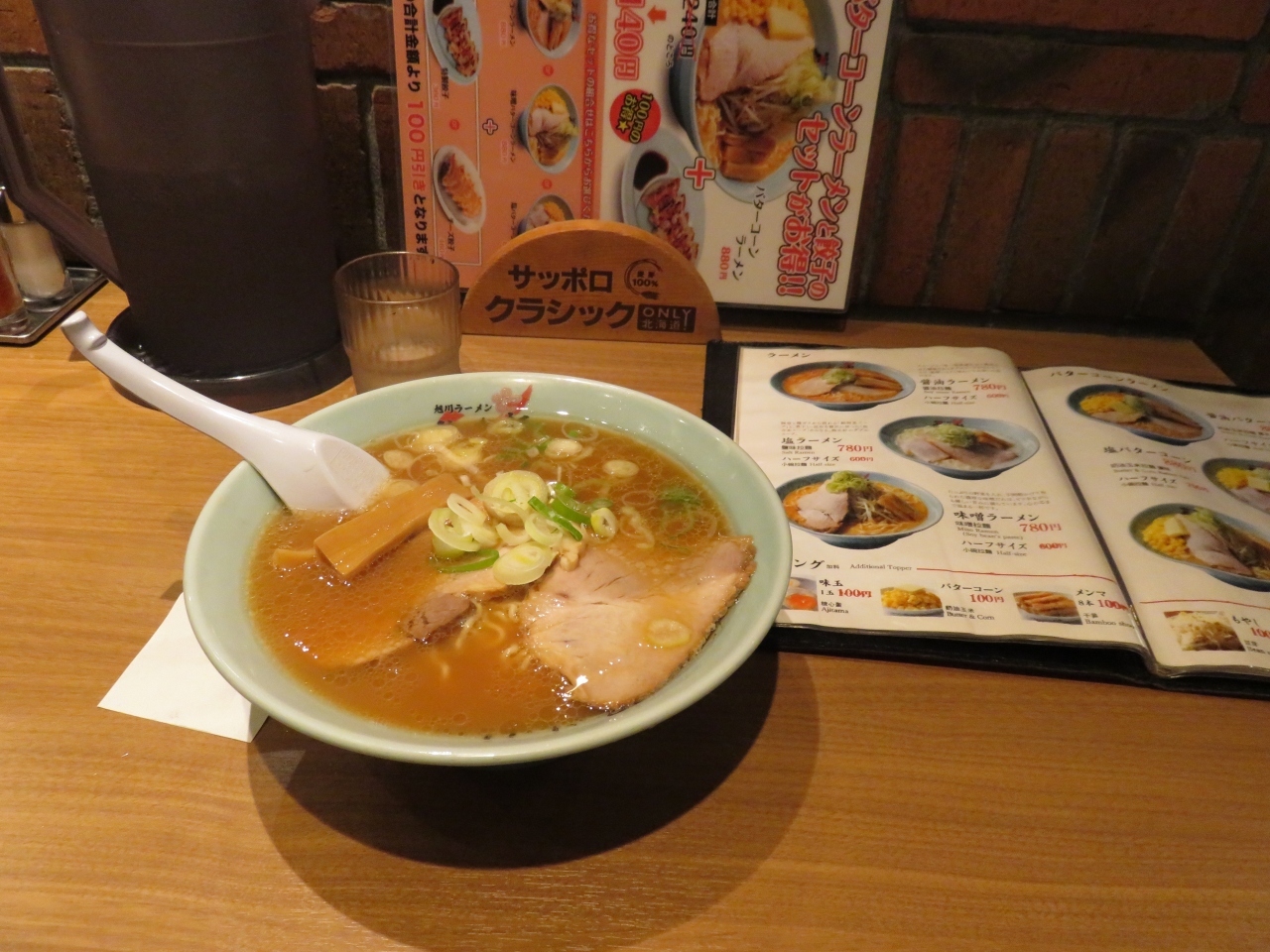 このラーメンは以前食べた気もするが、家内と入ることにした。私がスープそのまま、えびみそ、家内がスープそのまま、えびしおを注文。780円。家内は残した。私は完食。前回、札幌でも思ったことだが、味付けがはっきりしすぎると、途中から飽きることがしばしばある。