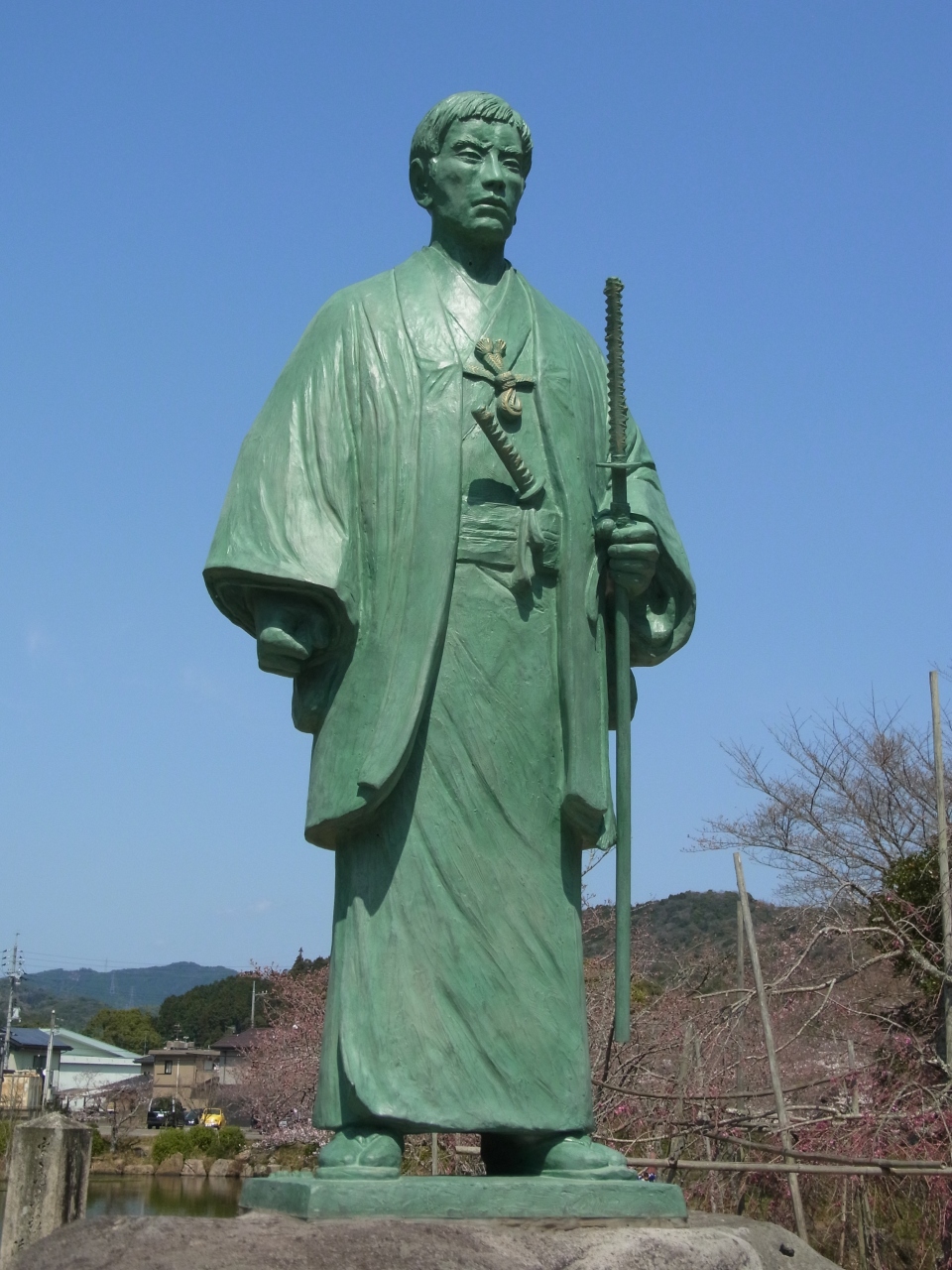 勿論、記念館に入る前には、吉田山の晋作やおうのの墓、奇兵隊員の墓等を巡った。晋作の陶像にくわえて、今回、記念館の正面のすぐ前に、新しい晋作の銅像が立っていた。陶像と姿は似ている。これで、下関には、日和山の陶像、長府功山寺の馬に跨った銅像に加えて、4点の晋作の像が揃った。力強いのは日和山の像だろう。今なら満開の桜に囲まれている。長府功山寺の馬に跨った晋作も、出陣の雰囲気だ。この東行庵のふたつの像は、二本差しでまっすぐ立つ像だ。