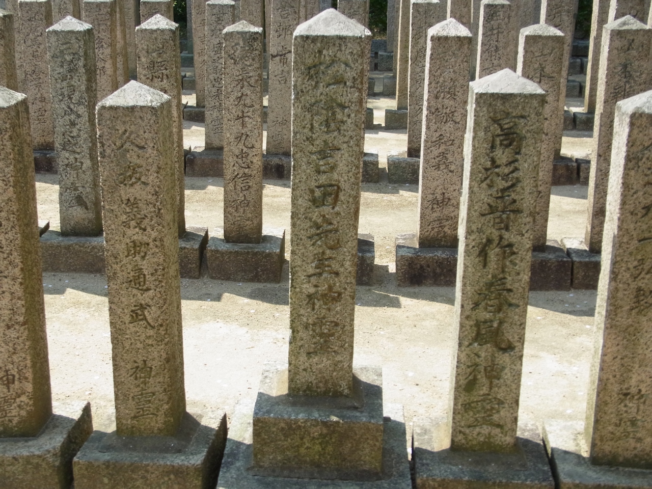 桜の満開と好天につられて歴史スポットを歩き回った。最後に来たのがここ。本当に久し振りだ。吉田松陰先生の碑だけは、他の人よりは台座が一段高く見えるが、実際の碑の大きさは391人同じだ。奇兵隊員等の出身による差別のなさがここでも表現されている。宗教としてのあれこれは別にして、ここで感銘を受けるのは、この身分差別のない精神だ。松陰先生への敬愛がそっと表現されているほかは、高杉晋作も久坂玄瑞も他の奇兵隊員らと同じ大きさの碑で並んでいるのだ。この場所を高杉晋作が発議した際の意識がこういったところに反映されていると見た。