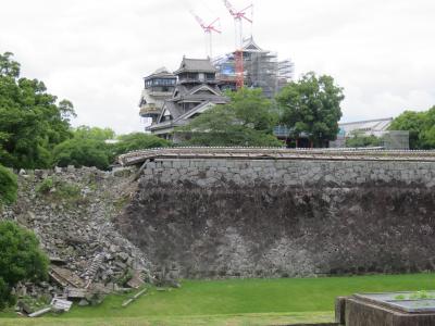 (追加:朝日新聞の7月23日の記事によると、この日から石垣の修復工事が開始されたそうだ。約7万個から10万個ある破壊された石垣の石を積むのに20年くらいかかるとのことだ。なお、石垣全体の約30%が地震で破壊されたそうだ。)- 旅行時期