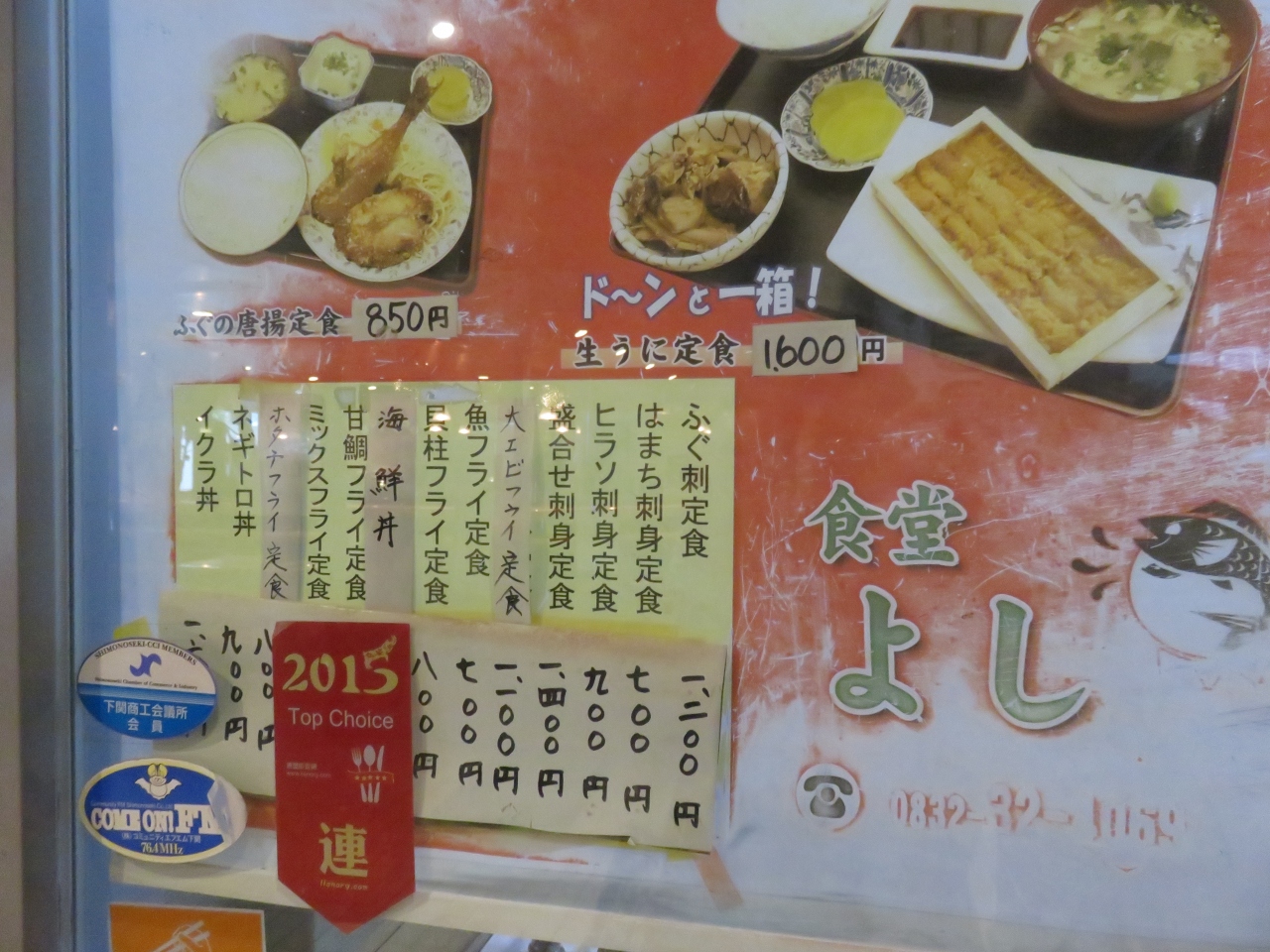 今朝、散歩で唐戸市場まで行った。8時前なのに、市場の人たちは準備で忙しそうだ。日曜はたくさん寿司などを食べに観光客が多いからだ。2階の市場食堂よしに上がってみると、既に人が並んでいる。家内と入ることにsた。普段はハマチ刺身定食700円が定番なのだが、今日はうに定食1600円とふぐ刺身定食1200円を頼んでみた。家内と刺身を半分どちらも試したみた。うには合格。ふぐは、家内がみがきを買って家で刺身にしたほうが、私たちの好物だ。下関スタイルは刺身が薄いので、我が家では、もっと厚くするほうを好む。8時に入店して食べたが店をでると、一階の市場の方にはたくさんの人がいて、寿司などを買っていた。前よりも朝早くから寿司販売が始まっているようだ。私はやはり、温かいご飯と味噌汁がついたほうがいい。