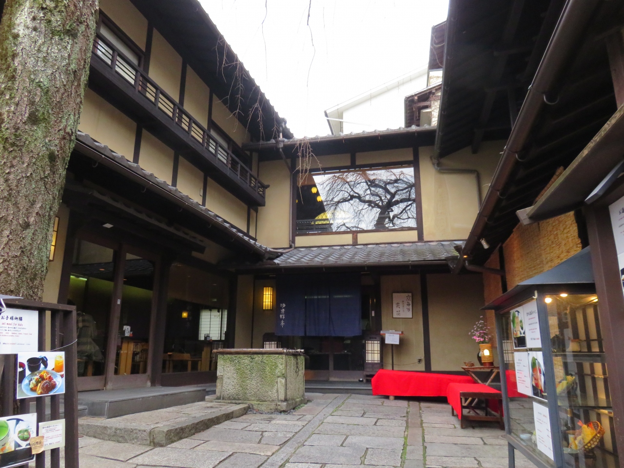 高台寺を見物した後で、2年坂、3年坂と歩いて行く途中で、昼時になり、食事のできそうなところを物色していたら、ここが目に留まった。龍馬が使った場所のようだ。そういえば、NHKの歴史番組かなにかで、この家は見た記憶がある。内部に屏風絵などが飾ってあるはずだ。そこで、入店。