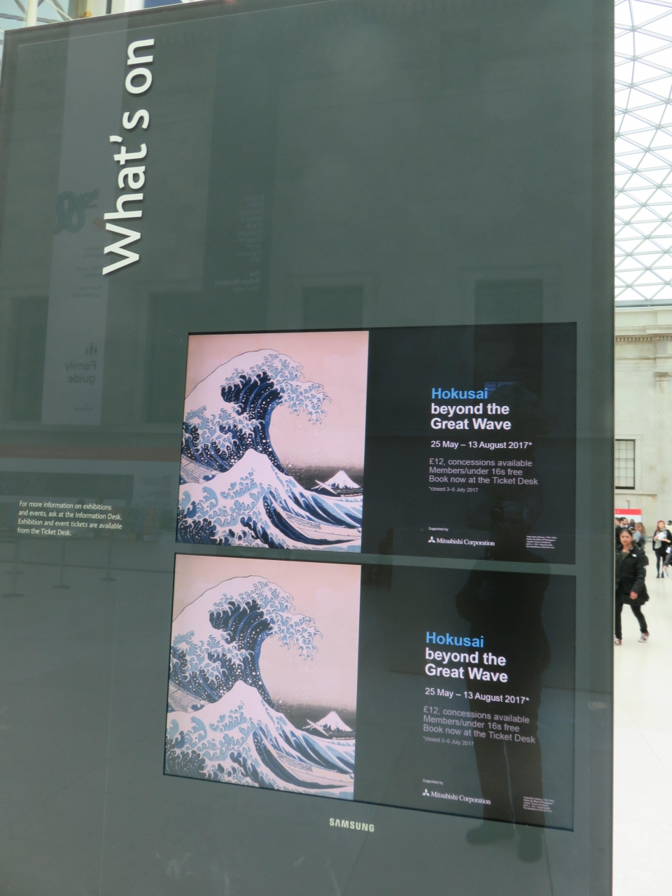 そうそう、間もなく三菱の提供で、北斎の特別展が大英博物館で5月から8月まで開催されるようで、大々的に広告がでていたが、その絵はなんと北斎の大波と富士の例の版画が選ばれていた。この版画を表に出すと客は集まるだろう!日本でもほとんど本物は見た記憶がないのだが。。。東京でも多分、本物の北斎の富嶽36景はほとんど見たことがないのだが。。。