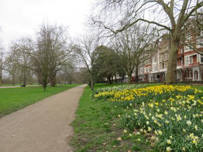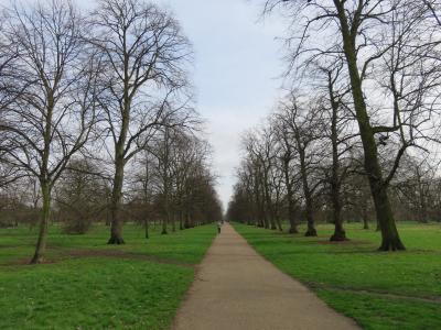 公園の北側を西の端から東のハイド・パークの端まで2km以上を歩く
