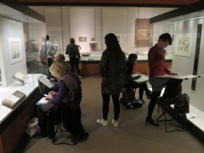 日本のものを展示しているコーナーではたくさんの美術専攻生が模写していた。なかなかチャレンジングな作業みたいで、みな真剣に取り組んでいた。