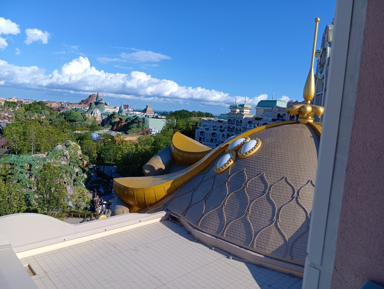 今回ちょっとした、部屋にベランダがあり、外に出れたのでそれも良かったです。ディズニー側ではないのですが、、