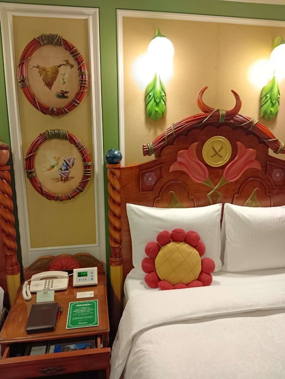 関連するホテルを調べると、ディズニーランドホテルに「ティンカーベルルーム」の存在を知り、宿泊しました。