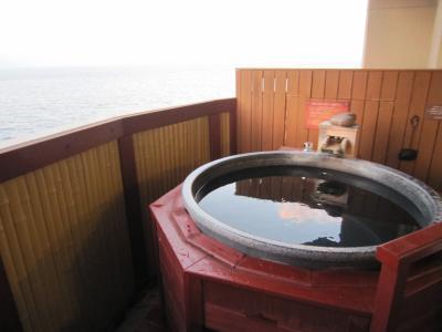 部屋に露天風呂があり海を見ながらのんびり好きなときに入れます。