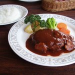 ハンバーグはデミグラスソースを期待していたのですが