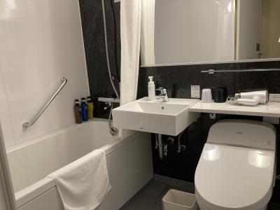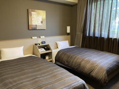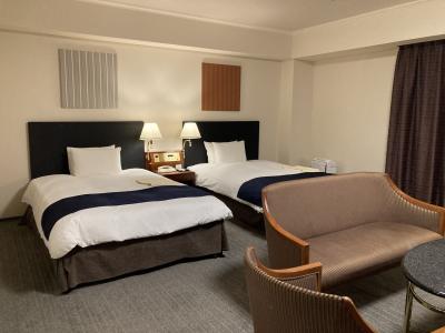 周りには飲食店やお弁当屋さん、銀行、コンビニといろいろ揃っている国道沿いにありました。旅行の途中宿泊で夫婦でツインルームを利用しましたが、今どきのビジネスホテル風で大浴場という名の男女別の浴室もあり、使い勝手が良かったです。駐車場も広く便利ですが、今回一階の部屋にアサインされたので、窓の外を駐車場を利用する人が普通に通る環境が気になりました。チェックインからチェックアウトまで遮光カーテンを閉めっぱなしにする人なら問題ないと思いますが。