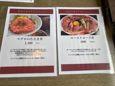 平日のお昼を過ぎて遅いランチでお邪魔しました。ランチメニューが充実していて、ちょっと悩みましたが、本日のおススメランチメニューというものがあり、それを頼みました。夫はマグロのたたき丼、私はローストビーフ丼。ボリュームもあり、丁寧に作られている感じで美味しかったです。