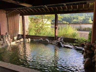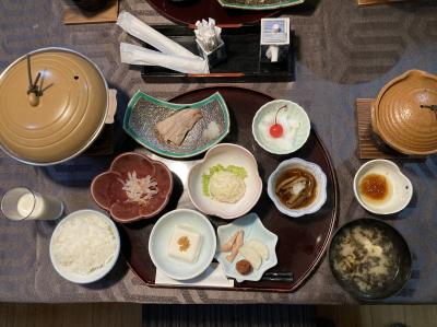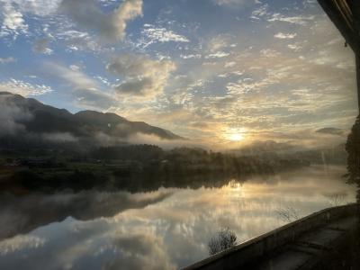 阿賀野川河畔にあるお宿でした。客室から眺める阿賀野川が美しく早朝には川霧も見られ、幻想的な景色に見入ってしまいました。そんな川霧の景色から朝日が昇り、本当に素晴らしかったです。お夕食は割烹のような美味しいお食事でしたし、温泉は硫黄のような香りのエメラルドグリーンのお湯で内湯も良かったですし、貸し切りで入れる広い露天風呂も良かったです。