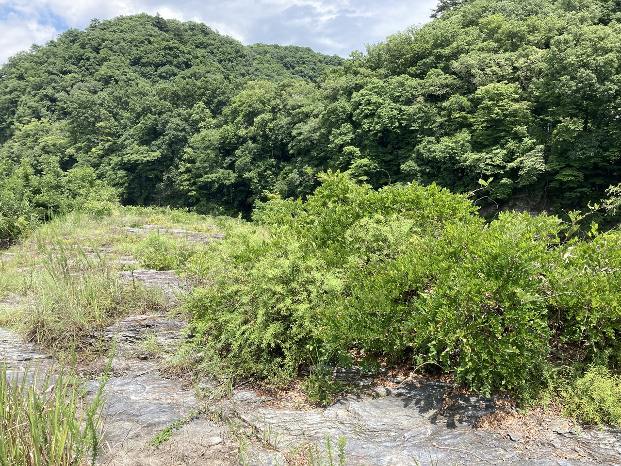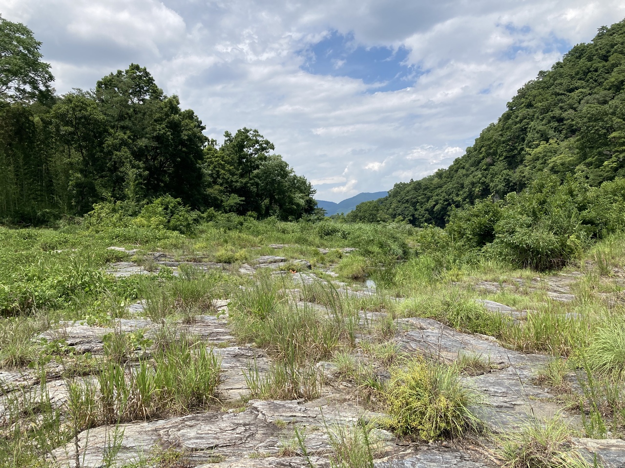 ところどころ、危険な場所に場所近づかないよう表示があったり草ボーボーな場所もあるが、途中から岩畳の上を歩けるようになっている。