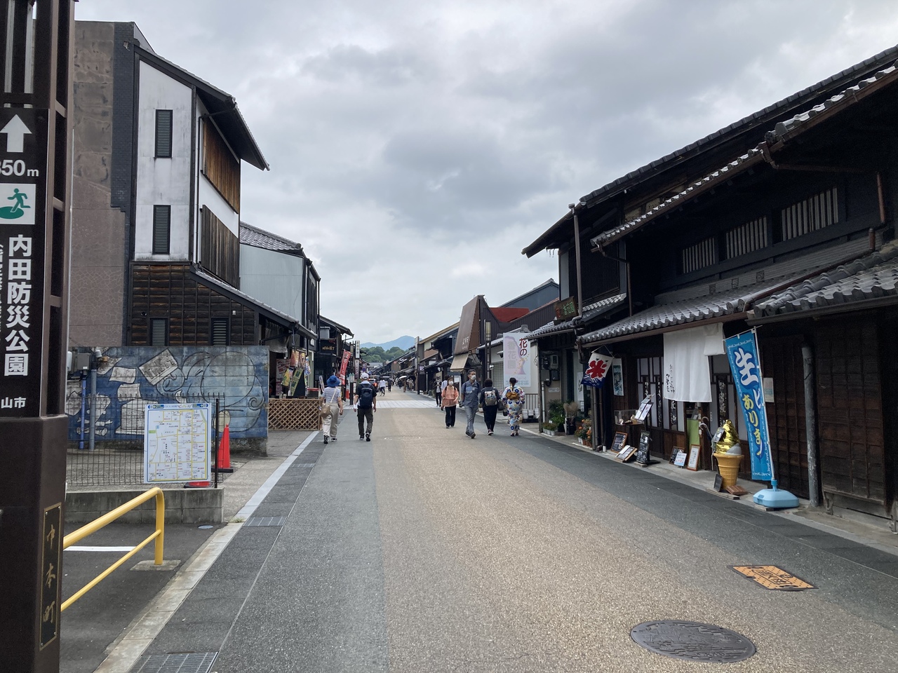 名鉄の犬山駅から10分~15分歩くと、本町通りに出ます。ここ?というような間口の狭い通りに感じますが、歩いていくと成る程、城下町の街並みといった風にに整備されています。