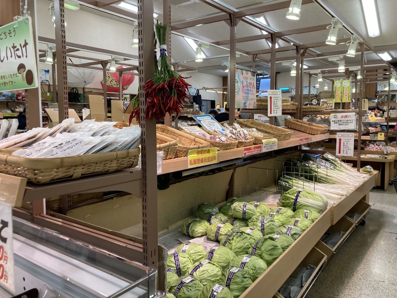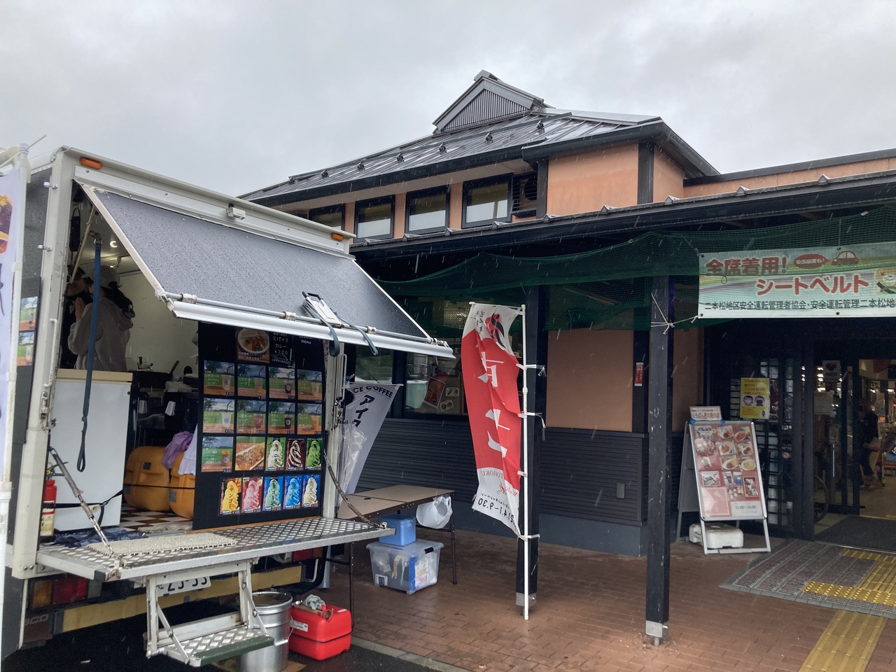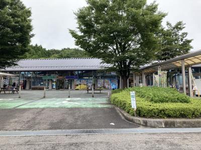 バイパス沿いにある道の駅で、こちらの上りの方は昔からある道の駅になります。下りの方は数年前からの道の駅なので、建物の造りや中のお店などは下りの方が使いやすいかもしれませんが、こちらの上りの道の駅の特徴は、トイレ棟の形が面白いところでしょうか。何というか、キャンプ場にありそうな形のトイレ棟。ただ、中は凄く現代的でキレイです。何となく東京駅やデパートのトイレを思い出すようなデザイン的な造りになっています。