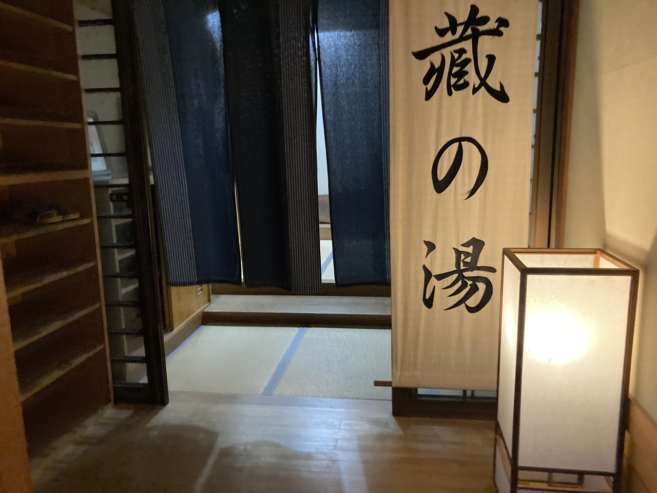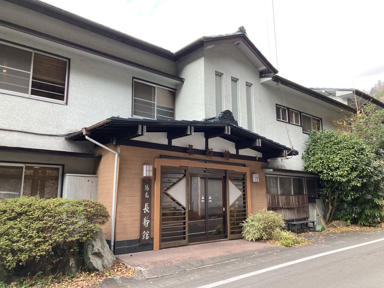 通りを入ったところにある小さな昔ながらの旅館でした。旅館への道は細くて、車がすれ違うことも難しいのでは?と思いますが、すぐなので一気に車を進めると良いかもしれません。