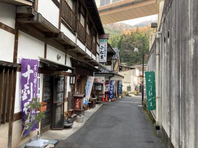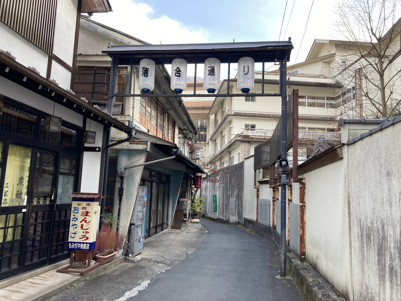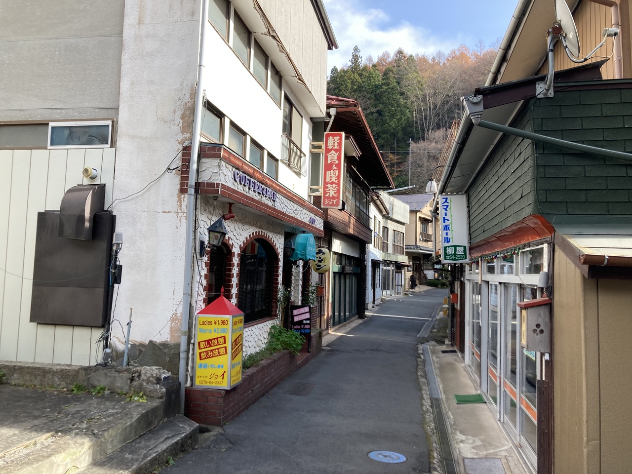 有名な温泉旅館の積善館本館の前あたりにある小道で、両脇に飲食店などがならんでいます。ただ開いているお店は数軒で、寂れた感じが残念でした。スマートボールなど懐かしいお店もあり、そこで興じる家族連れを微笑ましく見ながらぶらつきました。もしかして曜日や時間帯によっては、昔ながらの昭和の時代にタイムスリップしたような賑やかな通りになるのかもしれません。そんな時に訪れるのがいいのかなと思います。
