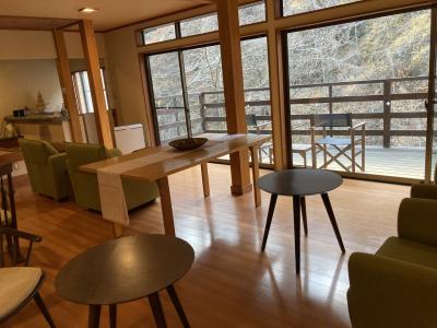 また、旅館内に吹き抜けになっている場所があって、薪ストーブが置いてあるのですが、そこを庭に見立てて造られている客室が素敵でした。今回は温泉付きの別館に泊まったのですが、いつかその客室に泊まってみたい!と思えるお部屋でした。