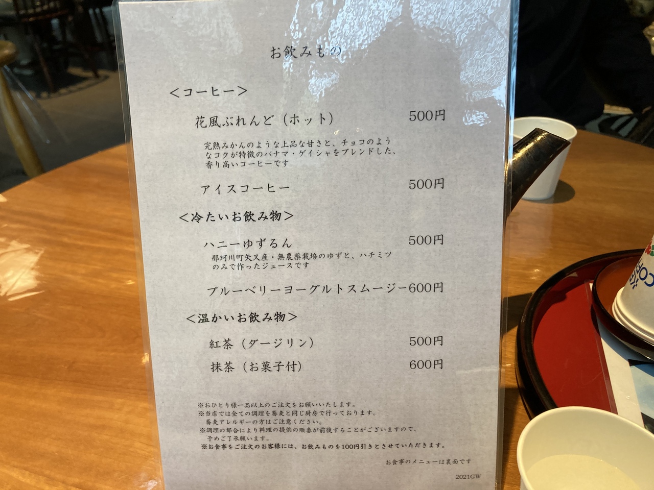 訪れた時は先客が一組だけでしたが、食事をしている最中にぽつりぽつりと増え、レストランを出る時はテーブル席がほぼ埋まっていました。とはいえ、コロナ禍で使えるテーブルを限定しており、安心して食事ができました。