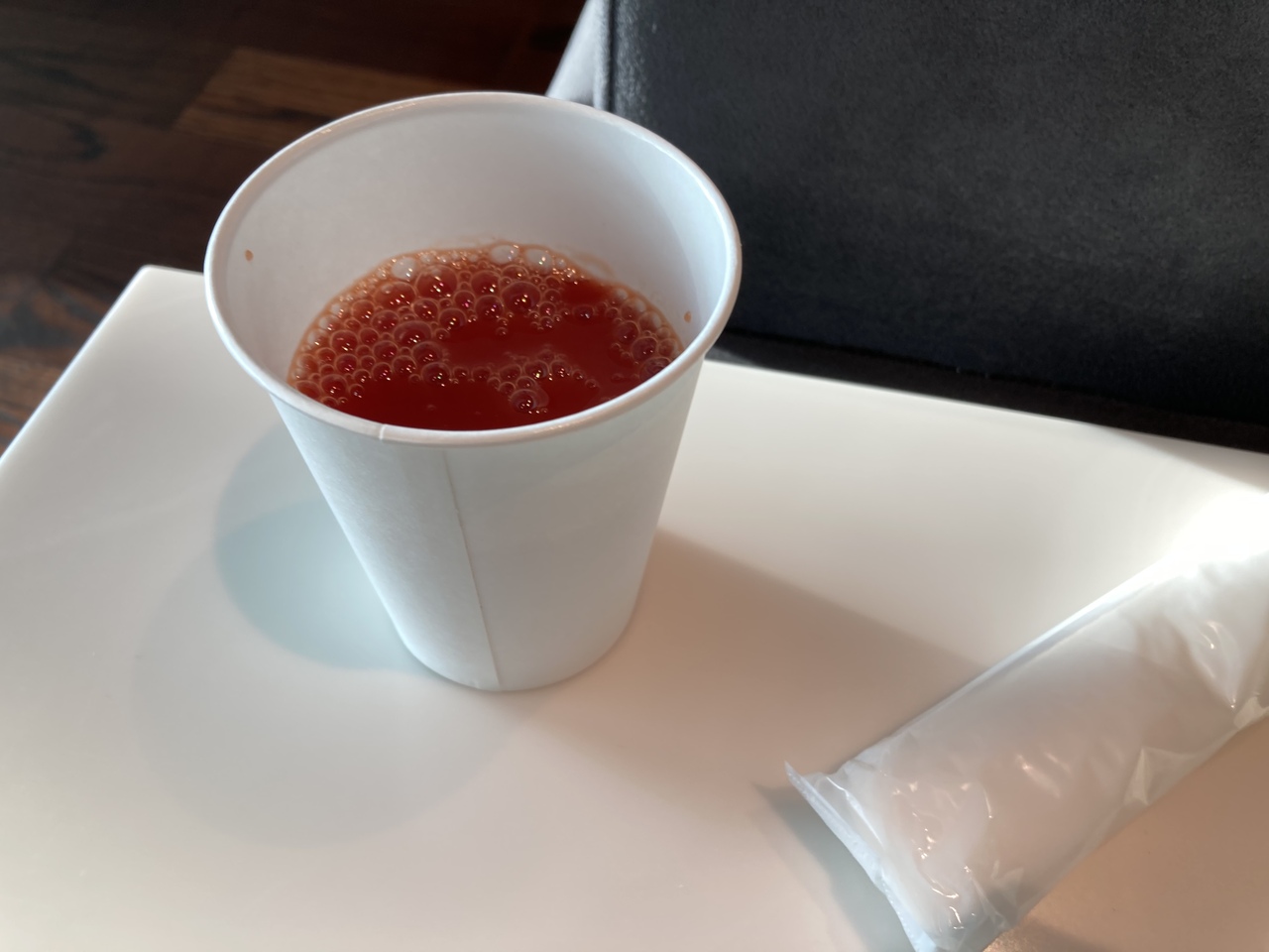 ドリンク類の種類も少なくなり、コップも紙コップに。有料の軽食はあるようでしたが、数に限りがあるようでした。- 旅行時期