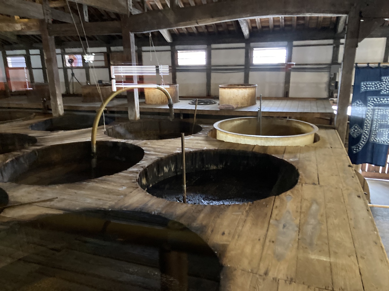 奥には甘露醤油を作る時に使っていた道具などの展示と作り方などの展示。急な階段を上ると実際に甘露醤油が作られている様子が見られます。と言っても、大きな木樽が並べられている様子を見る形となりますが。