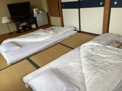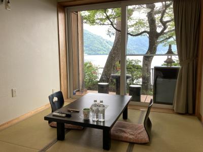 今回は7年前と違う1階の和室を予約してみた。2階のツインの部屋は眺望が最高、まるで湖上にいるみたいな感じだったが、ちょっと壁の薄さや、ユニットバスのトイレの使い勝手が気になった。