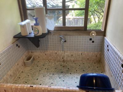 山口県周南市にある小さな温泉の割烹旅館です。宿の予約サイトで初めて知り、法要で山口県に行った時に行ってみました。お宿は古くからの老舗の風格のある和風建築。良き昭和の面影ある建物で、宿泊は離れでした。本館からは池の上にかかった木造の橋で行き来します。部屋は昔ながらのおばあちゃん家といった趣き、トイレは部屋を出たところにあり、温水洗浄付き。洗面所はその先にあり、今は懐かしいタイル張りの洗面所でした。いずれにせよ貸し切りなので、プライバシー的にも問題ありません。