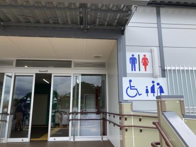 トイレはプレハブ作りですが、とってもキレイでした。お店は仮設店舗なので、ちょっと狭いかな。お客はそれなりにいるので、密になってしまうのが残念でした。ただ、下りのサービスエリアでも、階段を登れば上りのサービスエリアにいけるので、特に不便はないです。