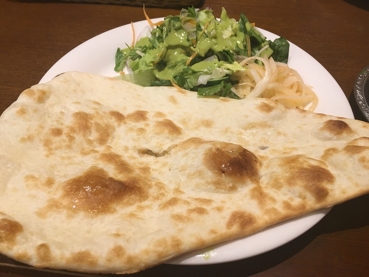 ナンの外側のパリパリ感と中のしっとり感。カレーをつけて食べた時の食感がとてもバランスがいいです。