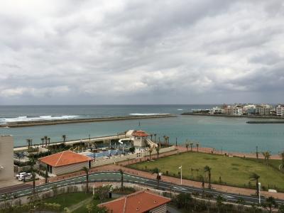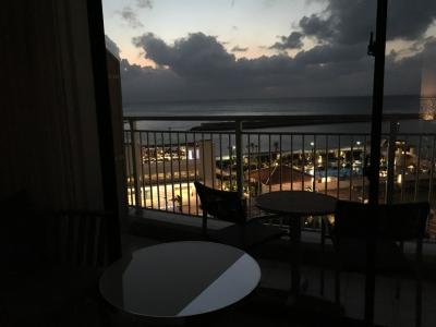 アメリカンビレッジのすぐ隣にあるヒルトン。目の前にダブルツリーヒルトン北谷があるので、眺望は若干遮られる部分もあるけれど、敷地が広くて眼下に広がるプールを見ていると、やっぱりリゾートホテルなんだなと思う。
