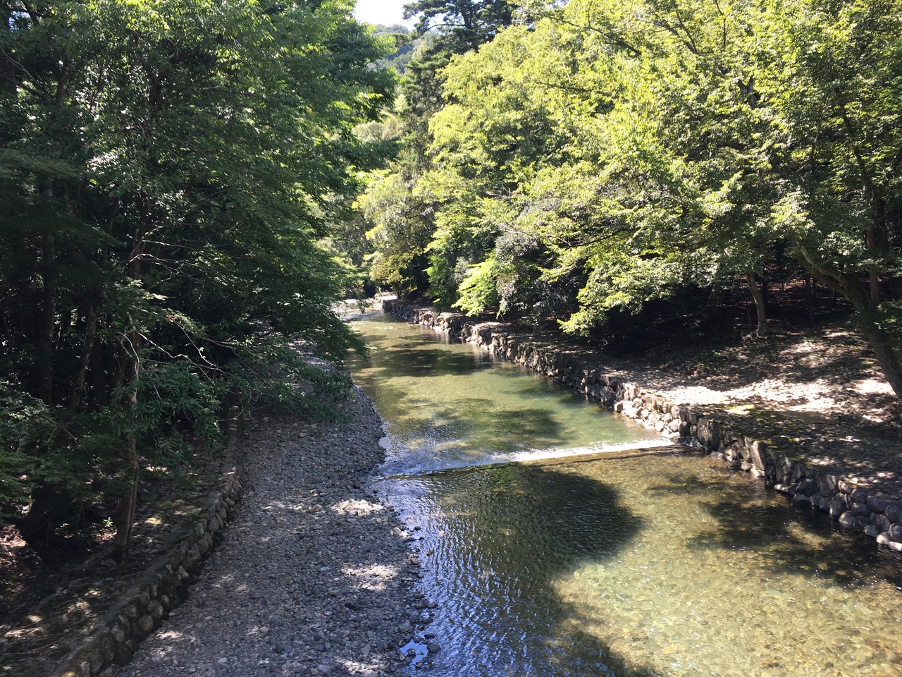 外宮に続いてお参りする内宮。外宮とは少し空気が違います。それでも共通するのは神域の自然の営みをとても身近に感じること。木々の生命力、川の水の清らかさ、きらきらしさ。風の息吹。これら全てが神なんだろうな、とつくづく感じられる場所でした。参拝の人はとても多いのですが、それがそう感じられないのが、なんとなく凄いと思ってしまいました。