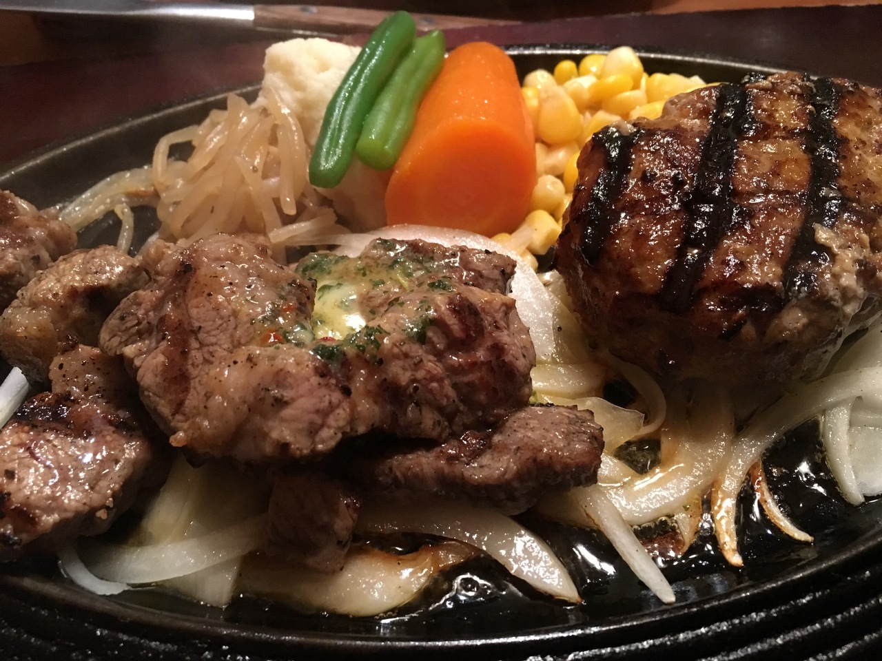 旅行中の夕食に入りました。地元の方々でいっぱいで、少し待ちましたがほどなく席に案内されました。お肉が美味しいとクチコミで見ていたので、ちょっと期待。美味しかったけど味はファミレス並でした。名のある国産牛のステーキなら満足できたかもしれません。ただセットメニューのサラダはボリュームもあり、大満足の美味しさでした。