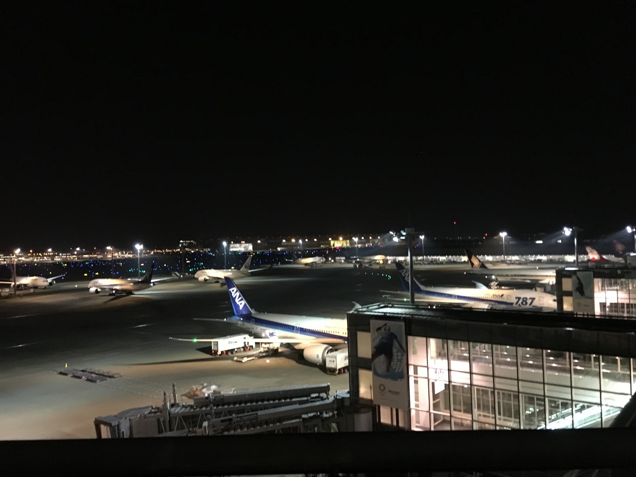 羽田空港国際線ターミナルの展望デッキは夜遅くても、見応えがあります。国内線ターミナルだと、夜8時を過ぎると一気に寂しくなりますが、夜中でもフライトがある国際線ターミナルは、展望デッキも相変わらずきれいで、お酒を飲んだ後に行っても気持ち良い風が吹いてオススメです。結構、人もいるので寂しくないし、そういう意味でちょっと安心感もあります。
