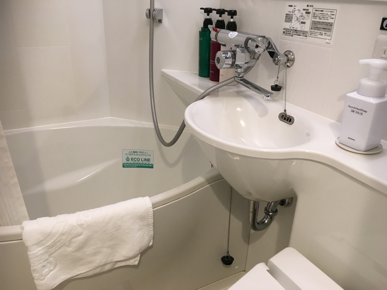 初めてアパホテルに泊まりました。新しいホテルなので、キレイだと思いますが、部屋が狭いのが残念でした。ただ、部屋が狭いのはアパホテル的にはちゃんと考えがあってのことだと客室内の本に書いてあったので、成る程と思いました。要するにそういったアパホテルの方針に合えばとても良いホテルだと思います。今回は2人でツインに宿泊したので狭さが気になってしまいましたが、1人でシングル利用なら感想はまた違っていたと思います。