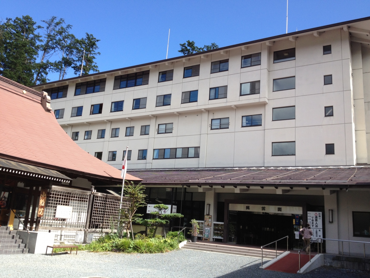 奥秩父にある三峯神社の宿坊です。宿坊といいながらも鉄筋6階建ての大きな建物で、お部屋はアウトバストイレながらも、旅館のお部屋と変わらないもの。お部屋に金庫、液晶テレビ、冷蔵庫などもあり、タオル、バスタオル、浴衣、歯ブラシの用意も有り。お風呂は温泉で日帰り温泉も可。トイレ、洗面所は共同で外にありますが、男女別で清掃がしっかりされていて、とても清潔です。ただ、客室階のトイレは和式なので注意が必要です。また、車は三峯神社の駐車場に停める形となり、興雲閣まではそこから徒歩10分ほど、もしくは電話をして向かえに来てもらうことになりますが、携帯はソフトバンクは圏外なので全く使えません。駐車場の公衆電話はテレフォンカードのみ使用可です。