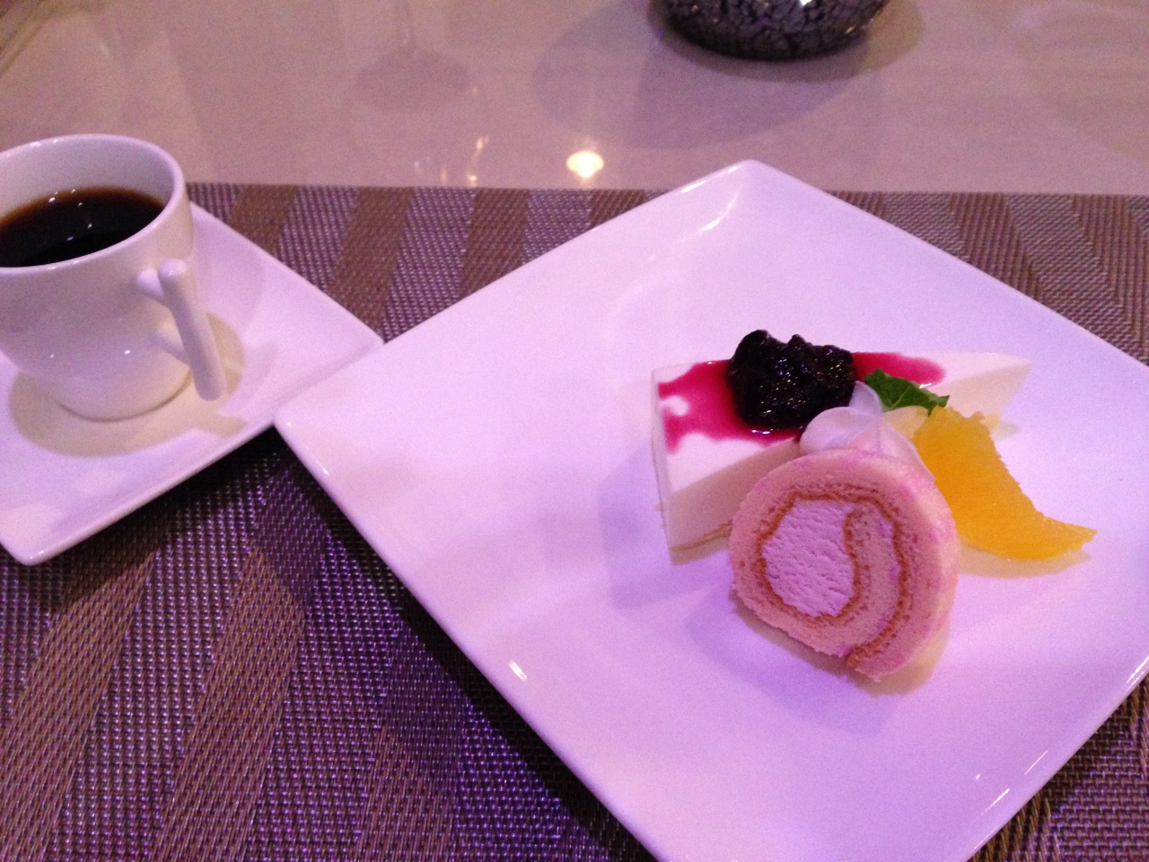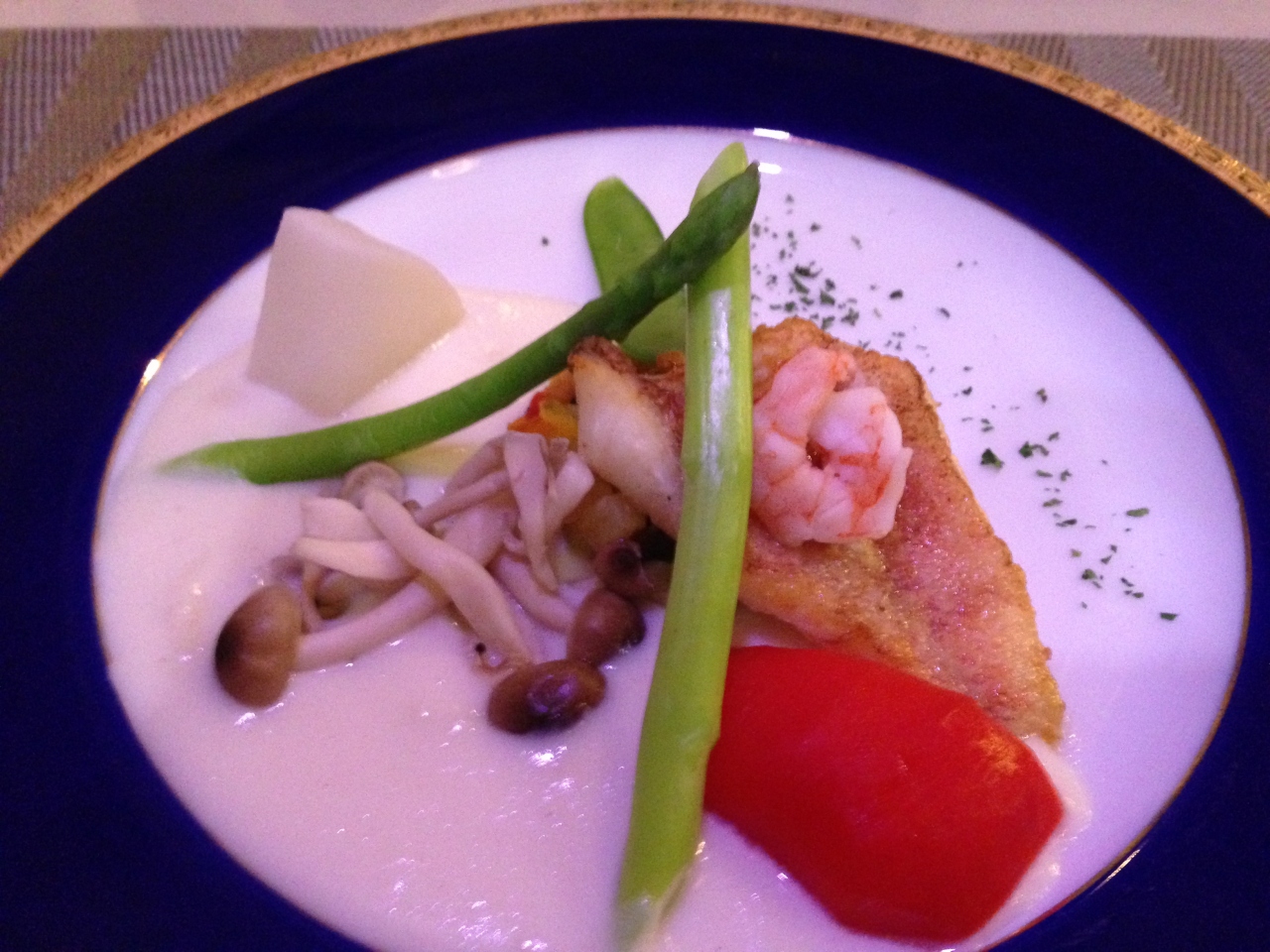 食事はこの時期はカニとアワビと伊勢エビを使ったフレンチということで期待していました。そして期待通りとても美味しくて大満足。ワインもお勧めを頂いたりして、とっても楽しいディナーになりました。でも、なんか変だな~と後々考えてみたら、フルコースの定番のスープが無かったことに気づきました。お品書きにも無かったので、忘れられていた訳でもなく。フルコースだとばかり思ってましたから、違和感があったのかもしれません。デザートもブッフェスタイルで、甘い物は別腹とばかりにたくさん頂けましたし、結果的に心も満たされて、こういうカジュアルフレンチもいいなと思えました。