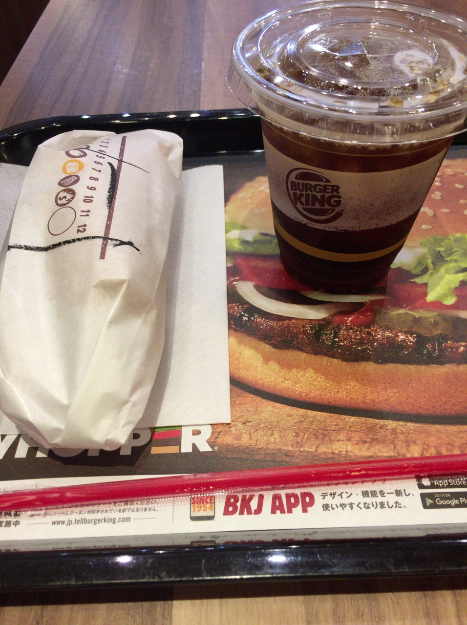 四谷三丁目交差点のほど近くにあるチェーン店のハンバーガー屋さんで朝ご飯にします。まずは、オーダーカウンターで南米系の兄ちゃんが流ちょうな日本語で接してくれます、たぶん、私が日本人に見えたのでしょう。何を言ったかわかりませんが、ホットドッグを作っているのが見えたので出来上がるでしょう…(笑)