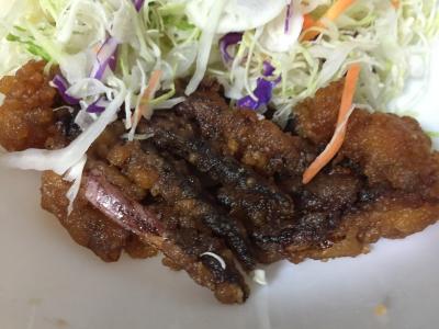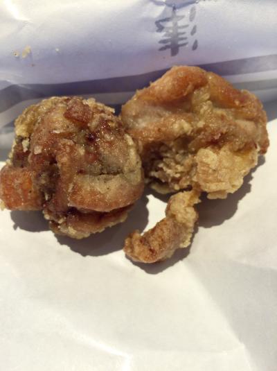 京急平和島駅改札口を出て、左手すぐにある屋台風の持ち帰り専門の鶏のから揚げ屋さんです。ショーケースの中には、塩味・しょうゆ味・にんにくだれの3種のお味のから揚げが並んでいます。お値段はいずれも@250円/100gということのようです。