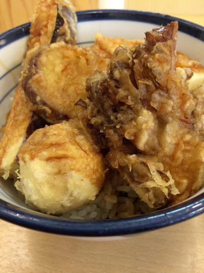 店内の仕様は、カウンターにテーブル席とチェーン店どこでも同じです。スタンダード天丼でもよかったのですが、野菜を食べたくなって、野菜天丼@580円をいただきます。