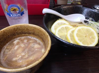 レモンつけ麺には、レモン4切れがのっています。最初は素の味でいただきます。この麺は旨いですね。そして、つけ汁にレモン汁投入です。あまりレモンの味がどうこういうことはないのですが、今回も「え、それで?」という印象ですね。普通のつけ麺のままで十分においしいと思います。