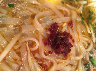 で、間違いなく着丼。辛いのがのっています。で、この辛いのは、かなり注意して溶かさないとむせる程辛いです。