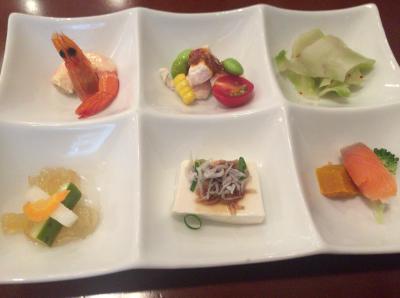 まずは、前菜6種盛りは目で楽しませてくれます。