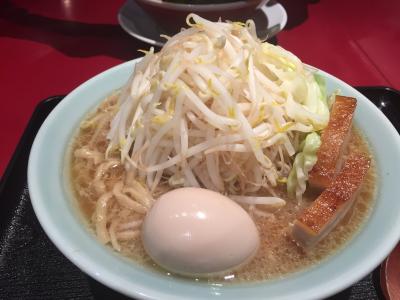 もやしの山と化して着丼です。デフォルトでゆで卵(味玉?)が入っています。ほぼもやしなので、なんとか頑張ったら食べることができました。- 旅行時期