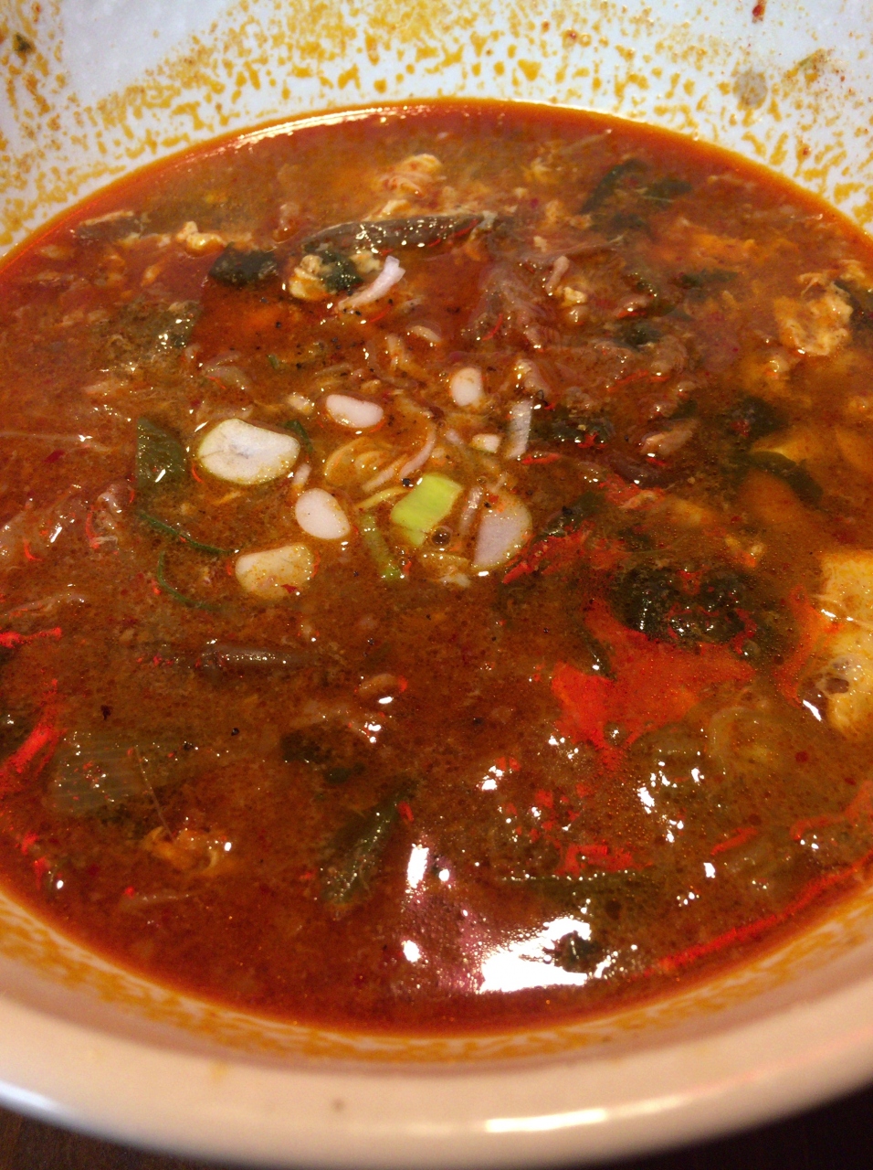 銀座一丁目駅から少し歩いたところにある鳥取県から来たラーメン屋さん。お店の売りは、豚骨ではなく牛骨のようです。で、牛骨つけ麺をいただきました。