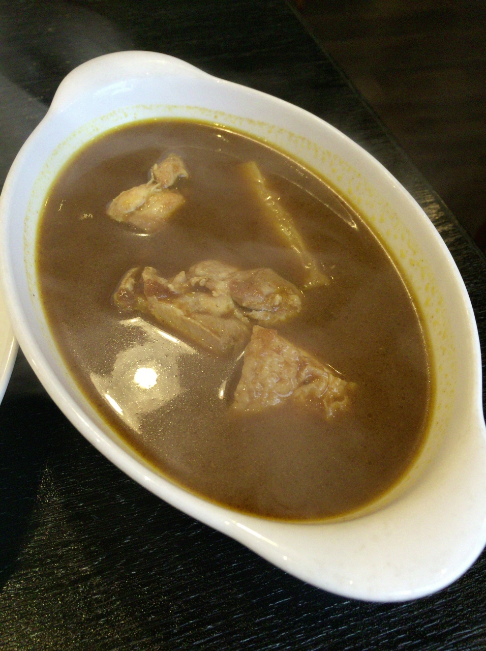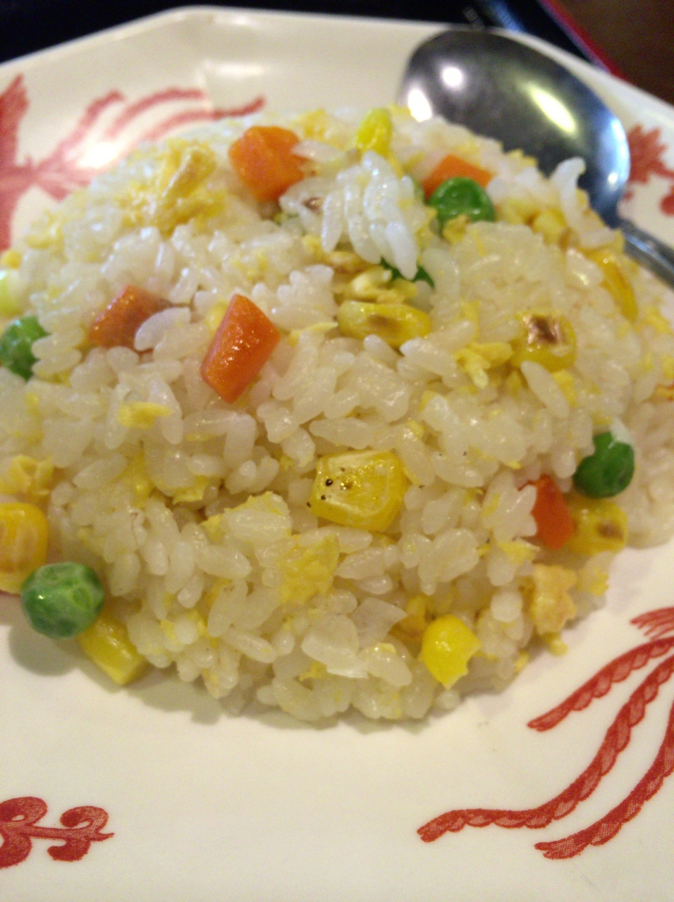 田町・三田エリアの某大学を大通りを挟んで向かい合うような位置にある中華料理屋さん。大通りに面した階段を上がると非常に暗い店内に進みます。