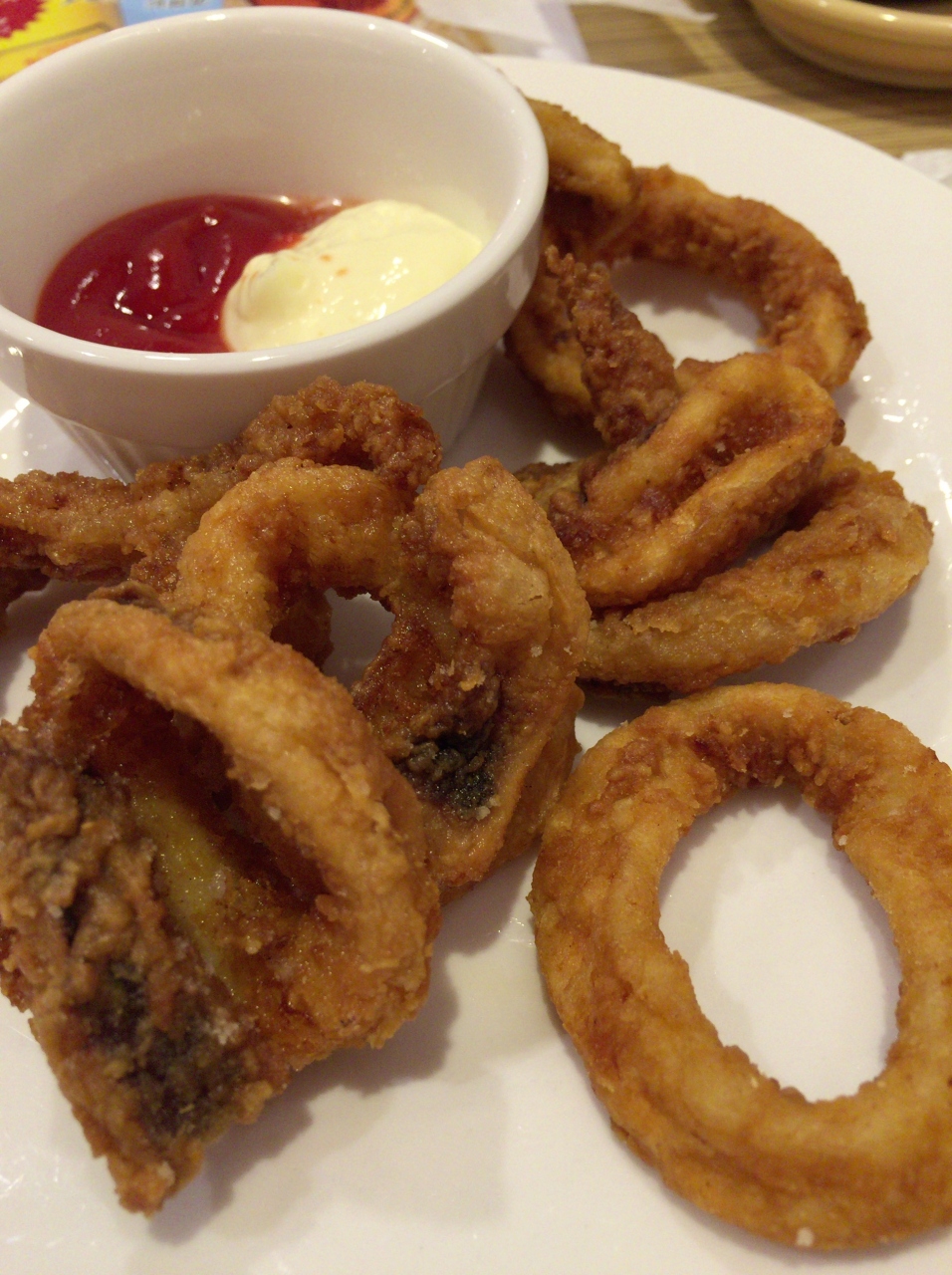 新宿東口から靖国通りに出て、明治通り方面に進み、区役所通りを越えて少し進んだところの地下階段を降りたところにあるチェーン店のファミレスです。