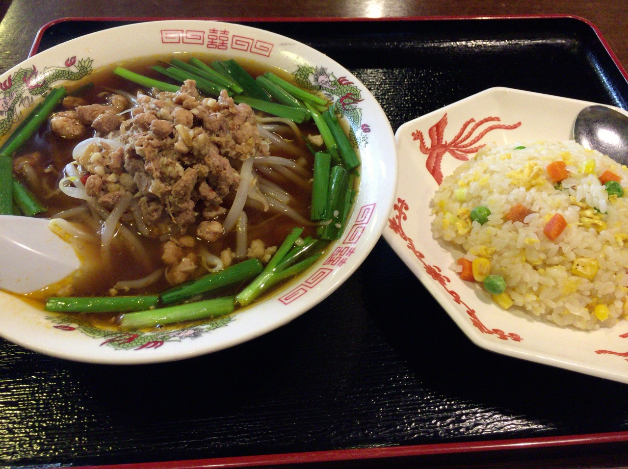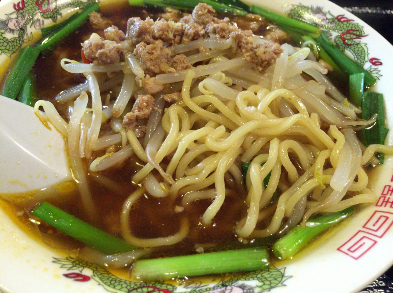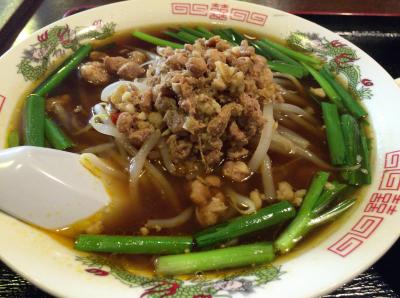 台湾ラーメンは予想と違い、醤油系ラーメンでひき肉がしっかりと入っています。- 旅行時期