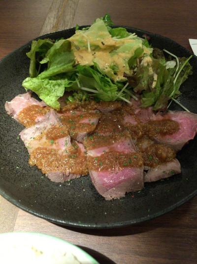 いただいたメニューは肉系の牛肉たたきです。低温調理が売りのようですが、そのキャッチコピーに反しないお味でした。
