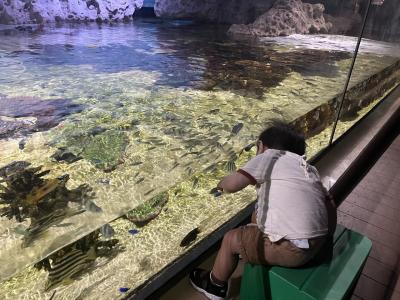 床がガラス張りのコーナーも。下にサメが泳いでいてちょっとぞわ・・・・息...